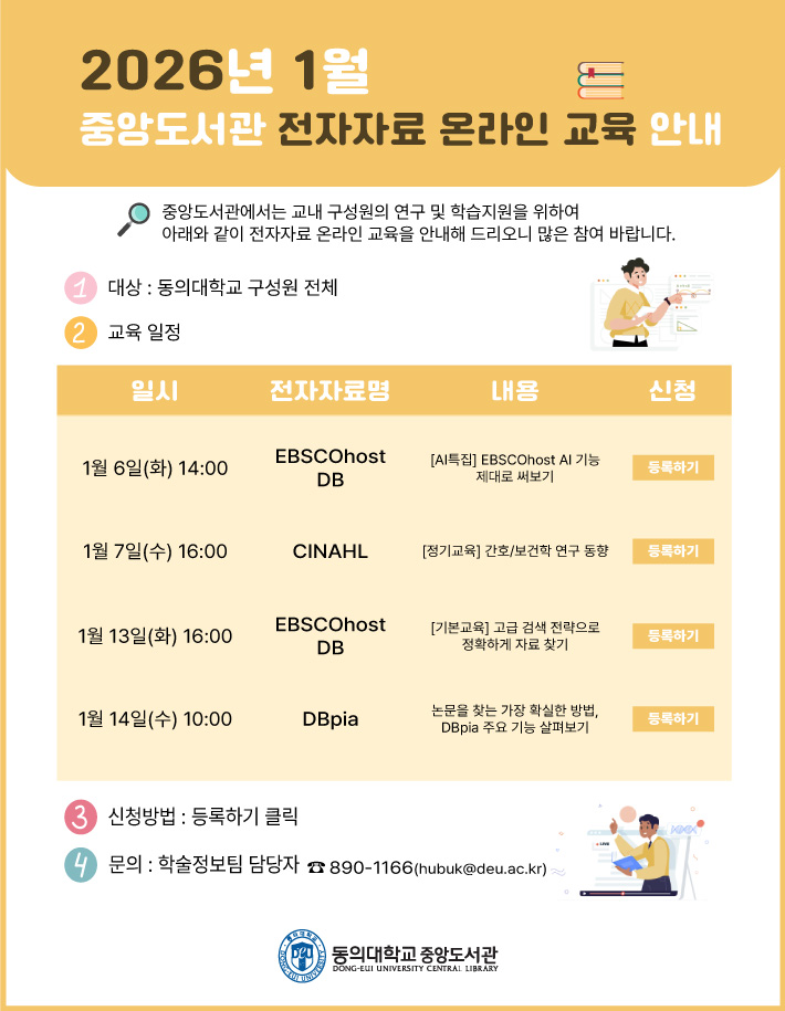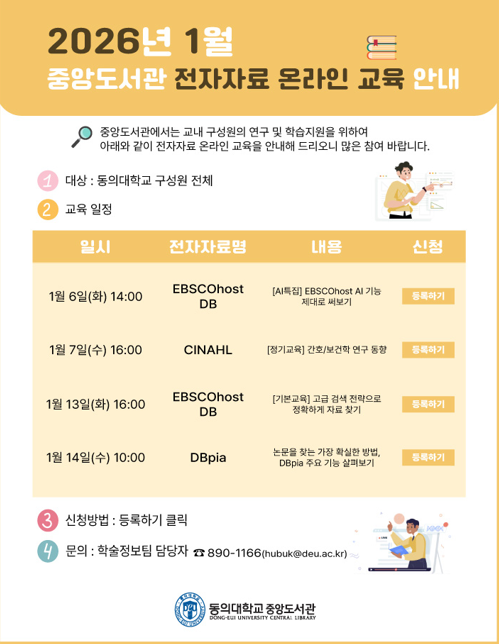 2026년 1월 중앙도서관 전자자료 온라인 교육 안내